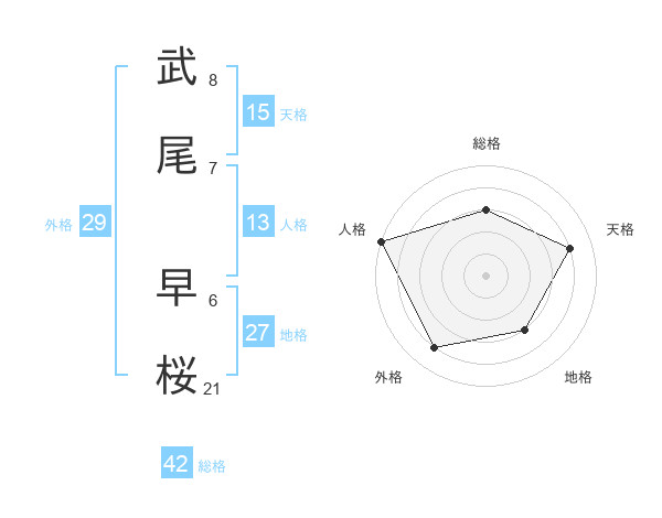 武尾 早桜さんの総格は42画の3点!