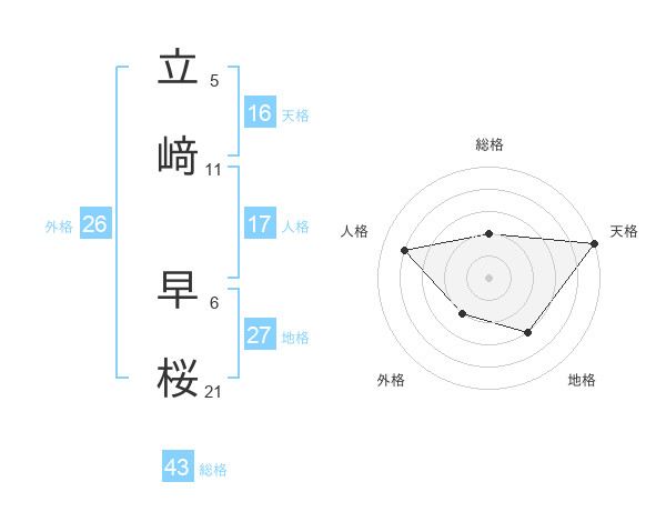 立﨑 早桜さんを姓名の画数から五運を鑑定