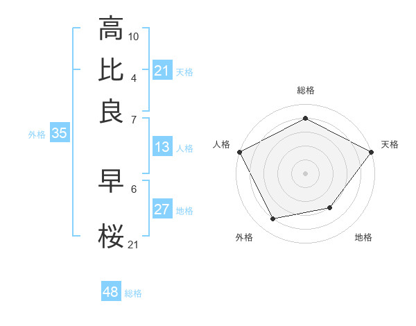 高比良 早桜さんを姓名の画数から五運を鑑定