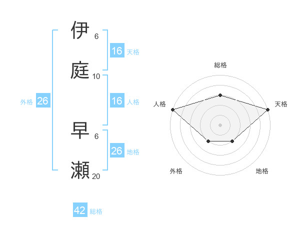 伊庭 早瀬さんを姓名の画数から五運を鑑定