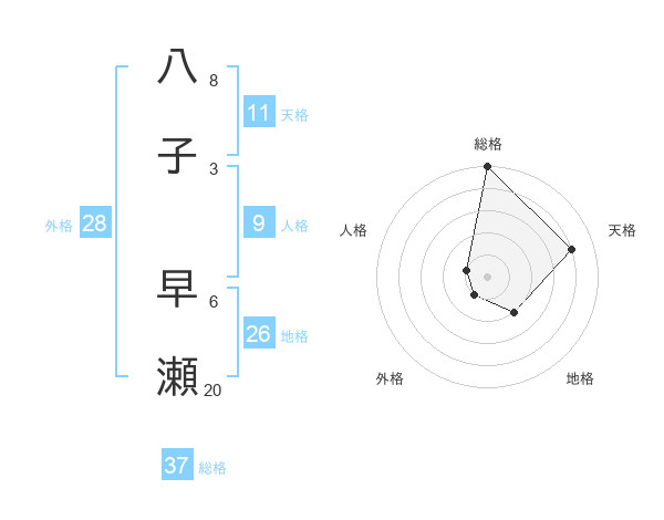 八子 早瀬さんを姓名の画数から五運を鑑定
