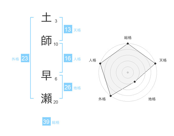 土師 早瀬さんを姓名の画数から五運を鑑定