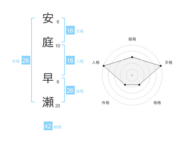 安庭 早瀬さんを姓名の画数から五運を鑑定