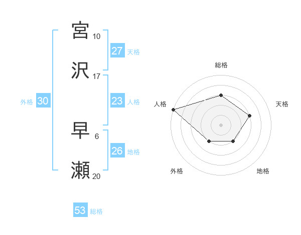 宮沢 早瀬さんを姓名の画数から五運を鑑定