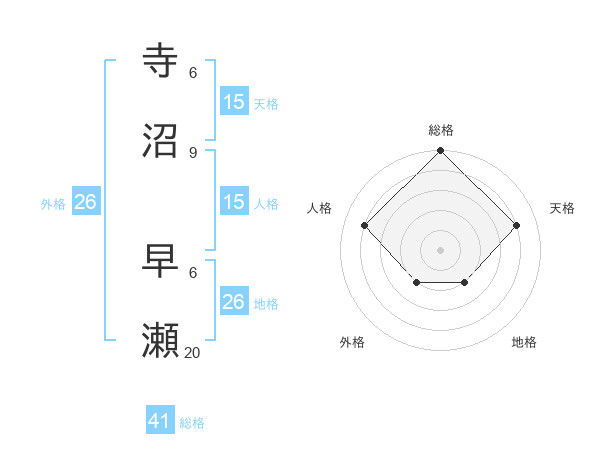 寺沼 早瀬さんの総格は41画の5点!