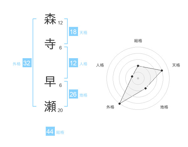 森寺 早瀬さんの総格は44画の2点!