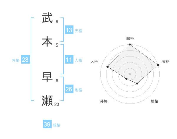 武本 早瀬さんの総格は39画の5点!