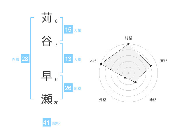 苅谷 早瀬さんを姓名の画数から五運を鑑定
