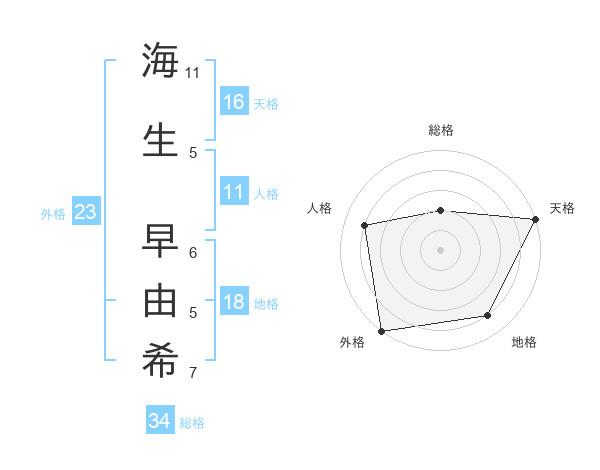 海生 早由希さんの天格は16画の5点