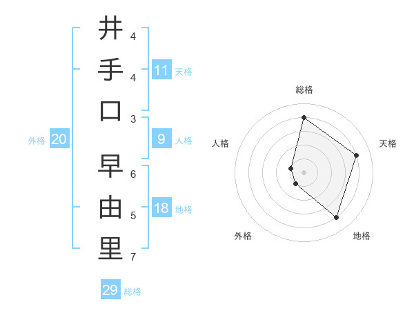 井手口 早由里さんの総格は29画の4点!