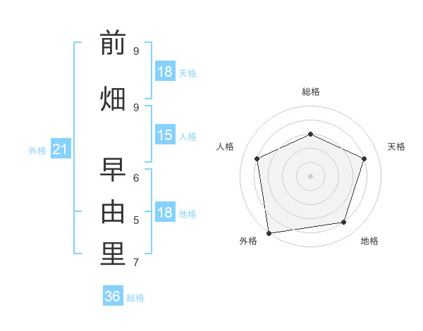 前畑 早由里さんを姓名の画数から五運を鑑定