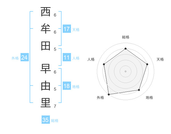 西牟田 早由里さんを姓名の画数から五運を鑑定