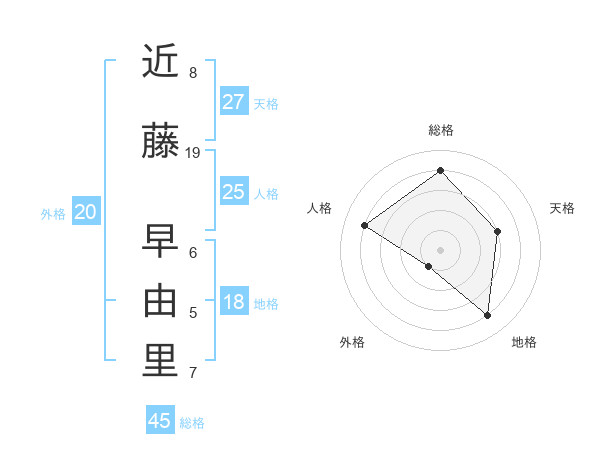 近藤 早由里さんを姓名の画数から五運を鑑定