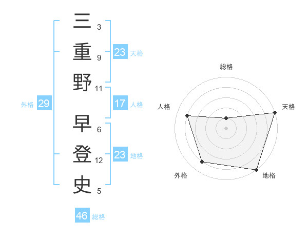 三重野 早登史さんを姓名の画数から五運を鑑定