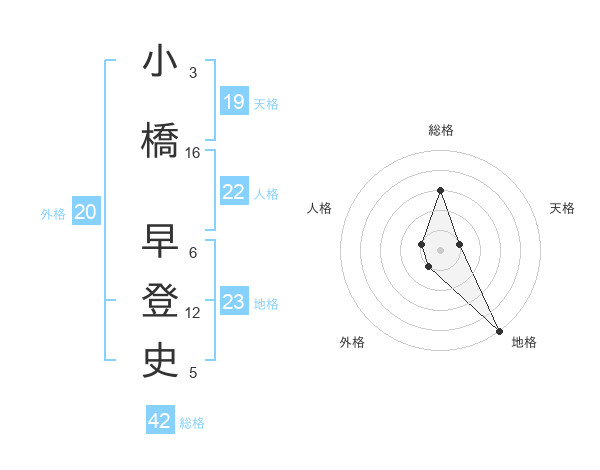 小橋 早登史さんを姓名の画数から五運を鑑定