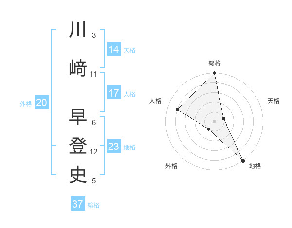 川﨑 早登史さんを姓名の画数から五運を鑑定