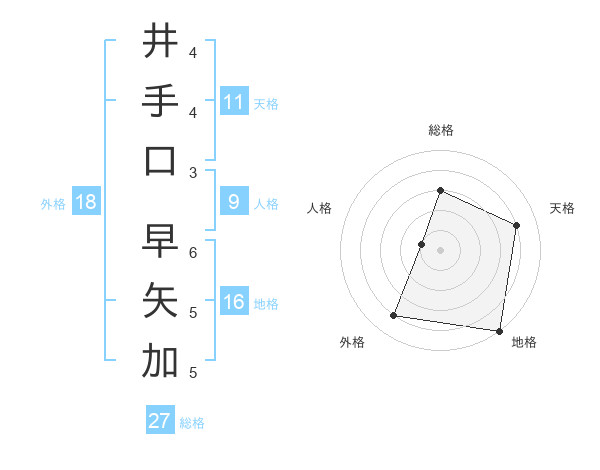 井手口 早矢加さんを姓名の画数から五運を鑑定
