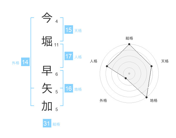 今堀 早矢加さんを姓名の画数から五運を鑑定