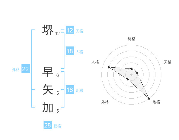 堺 早矢加さんを姓名の画数から五運を鑑定