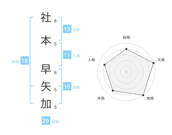 社本 早矢加さんを姓名の画数から五運を鑑定
