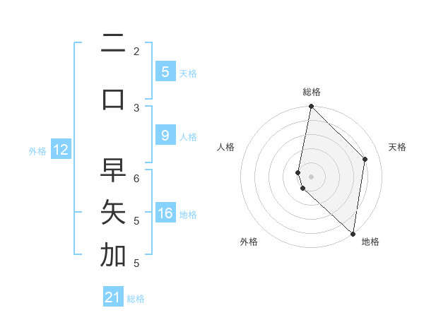二口 早矢加さんを姓名の画数から五運を鑑定