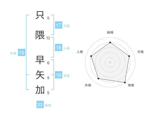 只隈 早矢加さんの天格は17画の4点!