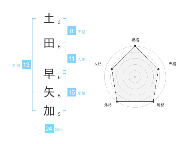 土田 早矢加さんの外格は13画の5点!
