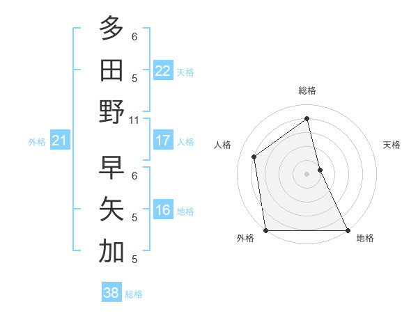 多田野 早矢加さんを姓名の画数から五運を鑑定