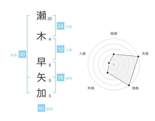 瀬木 早矢加さんを姓名の画数から五運を鑑定