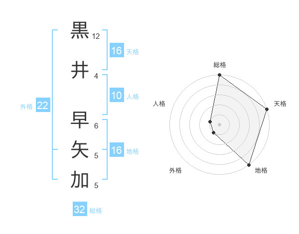 黒井 早矢加さんを姓名の画数から五運を鑑定