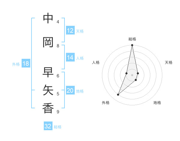 中岡 早矢香さんを姓名の画数から五運を鑑定