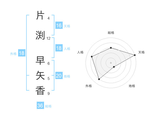 片渕 早矢香さんを姓名の画数から五運を鑑定
