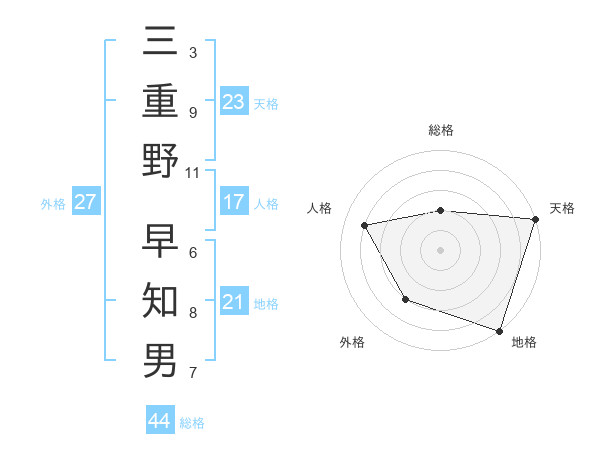 三重野 早知男さんを姓名の画数から五運を鑑定