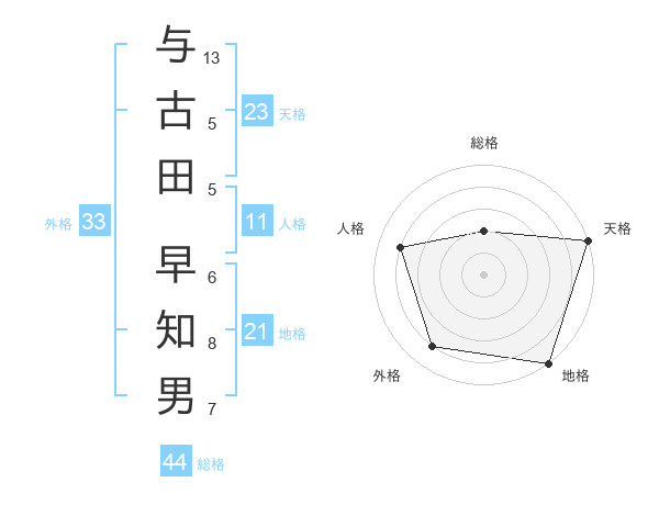 与古田 早知男さんを姓名の画数から五運を鑑定