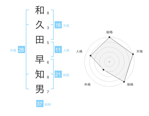 和久田 早知男さんを姓名の画数から五運を鑑定