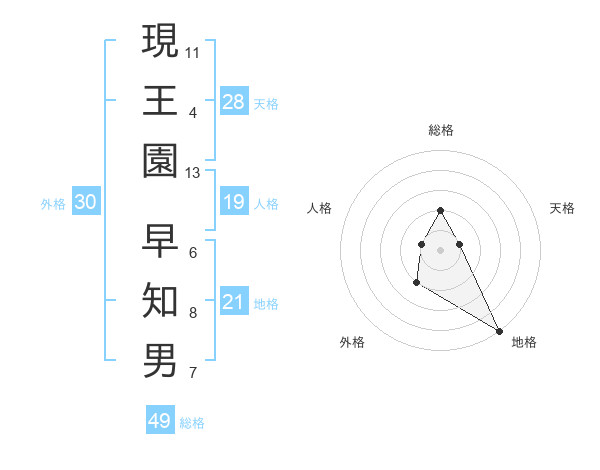 現王園 早知男さんを姓名の画数から五運を鑑定