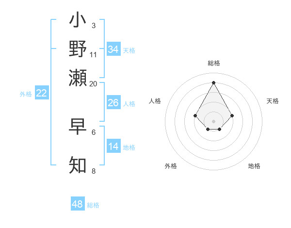 小野瀬 早知さんの総格は48画の4点!