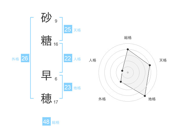 砂糖 早穂さんの天格は25画の4点!