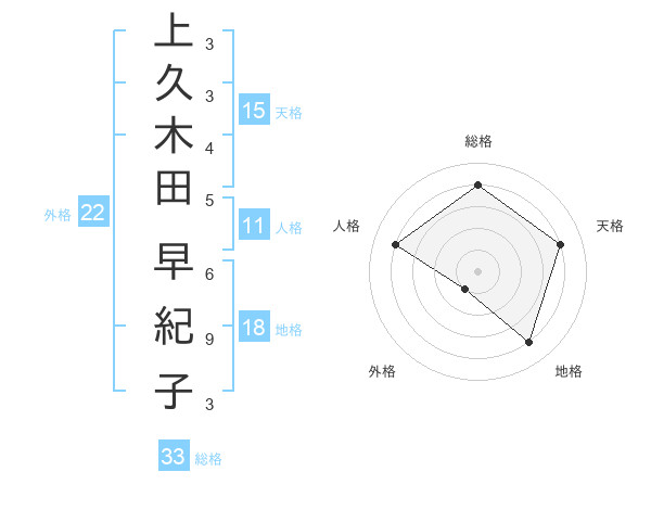 上久木田 早紀子さんを姓名の画数から五運を鑑定