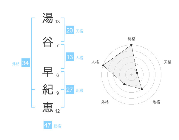 湯谷 早紀恵さんを姓名の画数から五運を鑑定