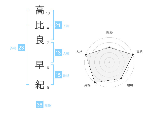 高比良 早紀さんの天格は21画の5点!