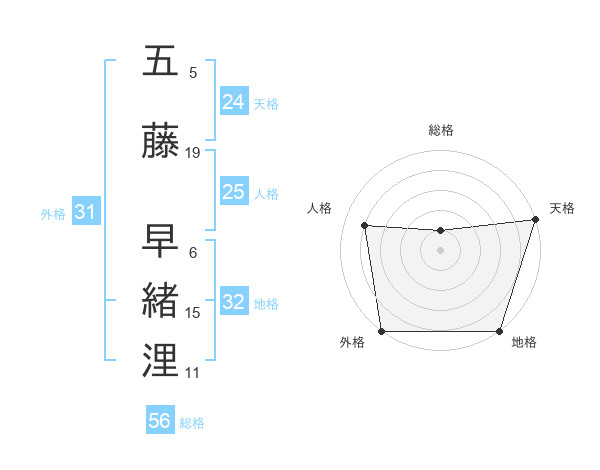 五藤 早緒浬さんを姓名の画数から五運を鑑定