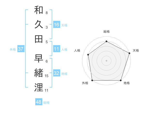 和久田 早緒浬さんを姓名の画数から五運を鑑定