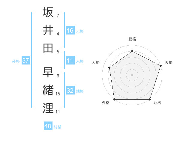 坂井田 早緒浬さんの外格は37画の5点