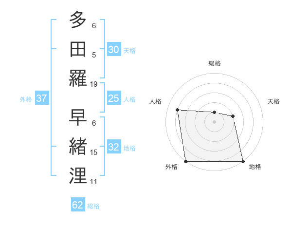 多田羅 早緒浬さんを姓名の画数から五運を鑑定