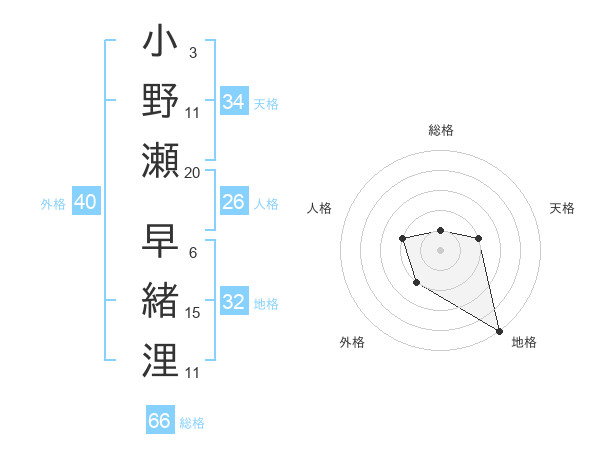 小野瀬 早緒浬さんの外格は40画の2点!