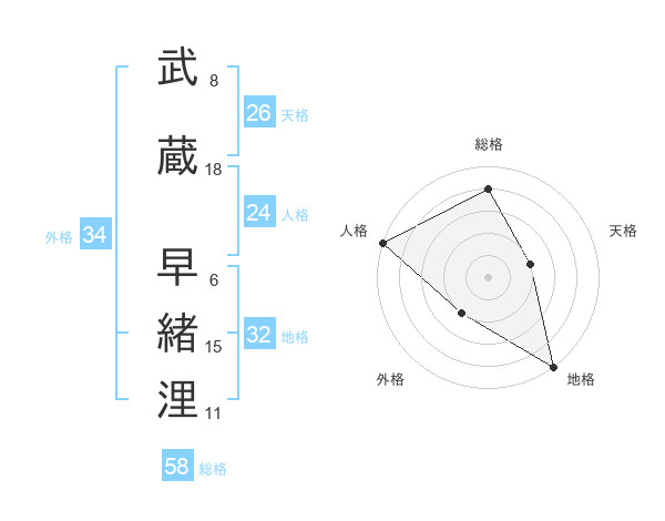 武蔵 早緒浬さんの天格は26画の2点!
