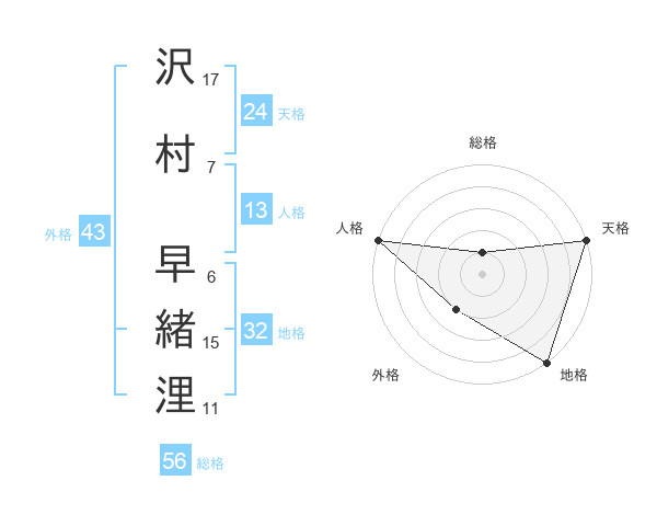沢村 早緒浬さんを姓名の画数から五運を鑑定
