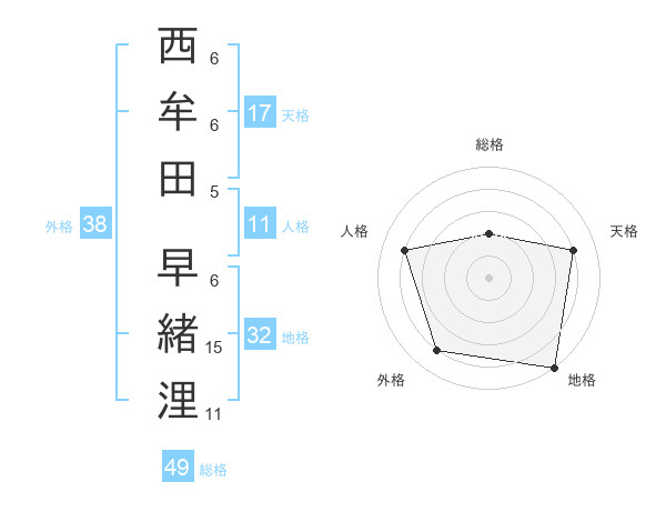 西牟田 早緒浬さんの外格は38画の4点!