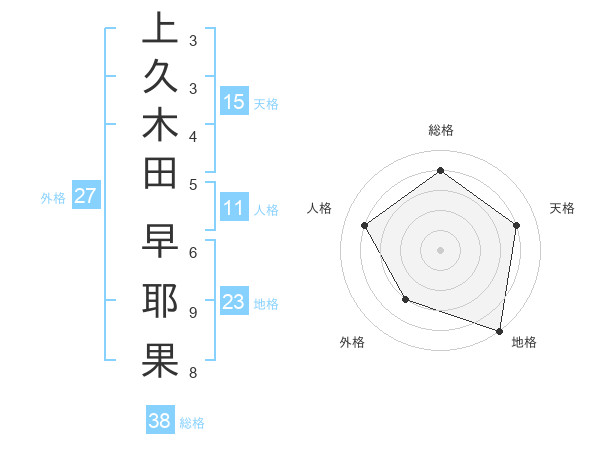 上久木田 早耶果さんを姓名の画数から五運を鑑定